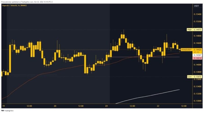 - Over the weekend, Dogecoin’s price moved in the 0.13800-0.14700 range
